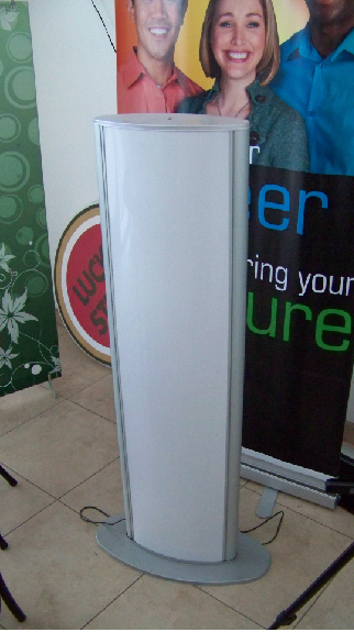 Curved construction allows your artwork to be seen from a wider range of angles than conventional displays, attracting even more attention. Featuring an aluminum framework with powder coated steel base and cover plate, these illuminating standing light boxes can handle both indoor and outdoor conditions.